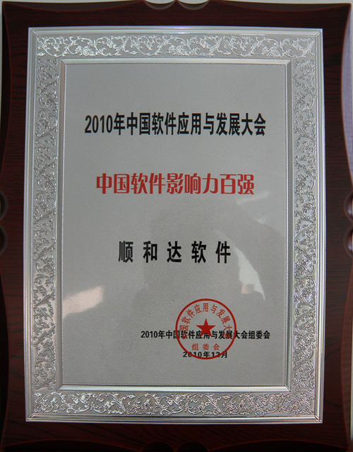 2010年,順和達(dá)獲得中國軟件協(xié)會(huì)“中國軟件影響力百強(qiáng)”獎(jiǎng)項(xiàng)