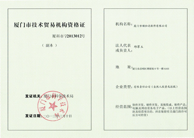 2013年,順和達(dá)軟件公司通過“技術(shù)貿(mào)易資格證書”